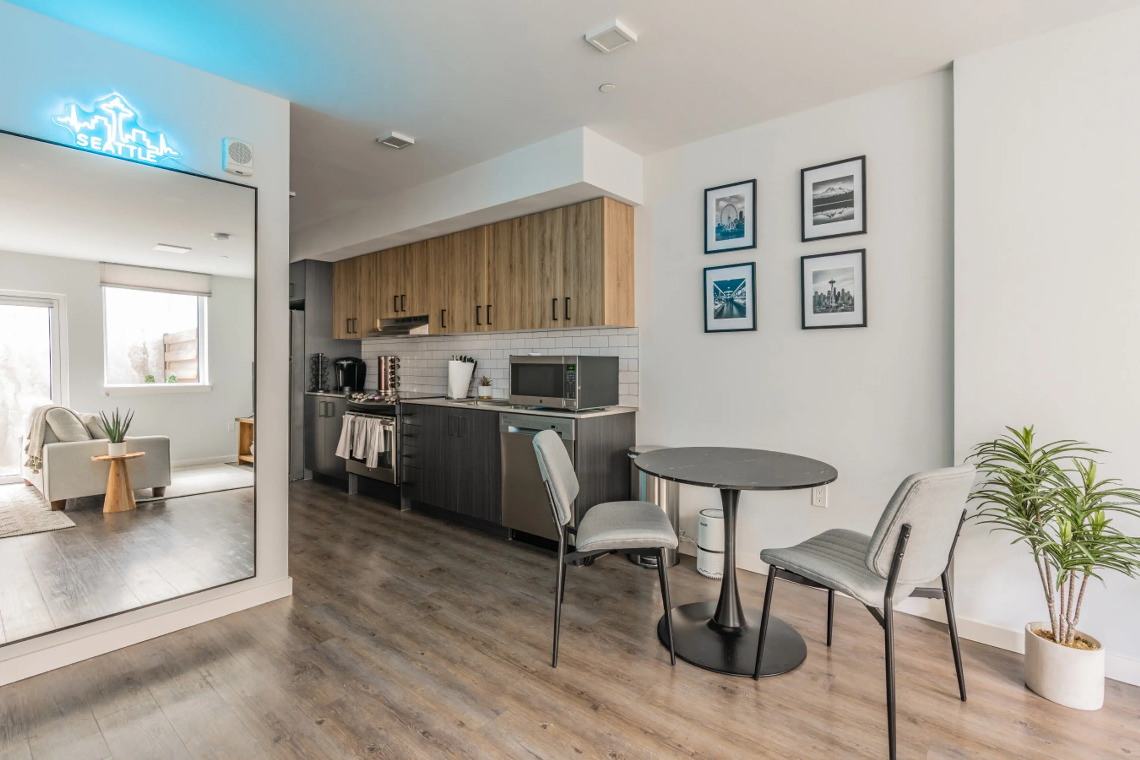 Stay in the heart of Queen Anne, just steps from Climate Pledge Arena and close to endless food, nightlife, and bus lines. It’s an easy walk to the waterfront, downtown, and some of Seattle’s most popular spots. The apartment is spacious, tastefully furnished, and fully stocked for any length of sta...